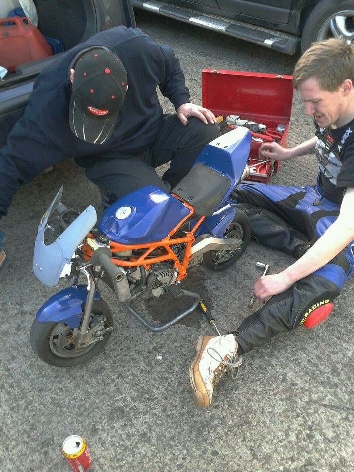In 2012 I went back to minibike racing; I started building an open class bike and had a bike which was a power demon. Me and my dad spent many weeks building it to get it ready for the first round of the Scottish that year and spent a lot of money. My wife and daughter came to watch that race meeting were I had nothing but problems, my bike was spitting the chain off, brake failures, more spitting chains, then when starting my last race in the reverse grid, sitting in pole my bike stalled and I couldn’t get it started again until the rest had finished their first lap. Was not the weekend we wanted. We continued racing that year, even buying a production class bike to race in the heavy weight class where I finished second that year. I was five points short of winning but missed the first two rounds, so it was achievable. I went back as an adult paying for it myself and relying on just me and my dad, it was the best racing season I have ever done, this brought me and my dad closer. We went on to race in 2013 but again budget hit as people were leaving the Polini’s behind and going to another better brand and we struggled to keep up, but we still enjoyed it. James Williamson still raced this year again and we had some great battles on the old Polini’s. When the last race came, we packed up the bikes and they have sat in the garage since. We went to the dinner/price giving that year and sat with James and Stuart Anderson who won that year. Stuart was a talented racer who should be up in the BSB racing but never got a break. I did not know this would be the last time I would have seen James, he was a good friend at the racing, even though when we were on the track it was a constant battle, after the race we always shook hands and shared a pit together. He passed away due to the injuries he sustained when he was out on his big bike on the road.