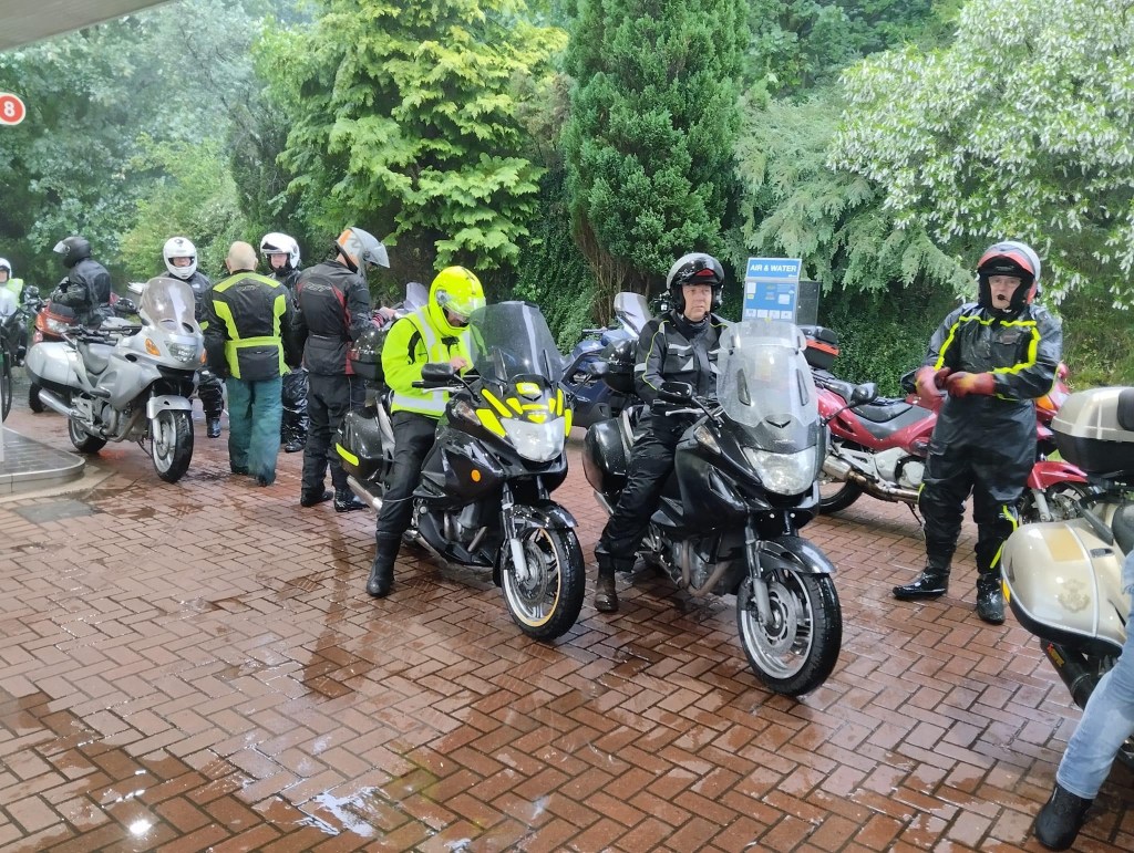 When I woke up on Friday for the ride out I was met nicely with rain which was going sideways, we met in Markies tent which had a big space for us all with our chairs where Ged met up with us, he was from that area and was going to be the lead rider for the weekend. There was another surprise for his as he was also made admin when he came up on Friday. We delayed the ride to see if the weather would break but it never gave way so only 5 decided to go out. Some of us that stayed decided to go for something to eat down in Matlock around lunch time as the rain stopped. Matlock can be described as a seaside town which has a river instead of a sea, we went to a little pub for a quick drink before Greggs. As we were heading back to the camp side the rain started again and soaked me right through, my jumper was soaked as was my jacket. On the Saturday we all decided to go the ride, we went through some good roads and just 15 miles in we were met by our first big puddle. The heavens opened and the front of the pack decided to pull in to a little thatgarage, I was on the bike just outside the canopy and getting soaked, my language was not the best at point as I just off the bike. When we got back on the route we seen a bright flash of lighting followed by a roar of thunder. We took a trip to a bike dam where the famous dam busters was. We got back to the camp site and we all fired our wet stuff in to the boiler room of the pub to dry out. Saturday was a good crack with a live singer. I had to leave early as my head was slipping, so went back to the tent, fired up the iPad and fell asleep watching Ted Lasso. When I woke up on. The Sunday I decided to head back down the road, originally I was going to stay to Monday and go for a ride out on the Sunday but with the rain coming back in I packed up when it was try and set off, it rained from Manchester to Blackpool with strong winds, once I just passed Ecelfecon the sun came up and manage to dry me out thankfully. Over all it was a good meet and I will be attending it in 2024 as well as the Deauvilles in Devon, the group is a great group and mainly English based. There is a lot of deauvilles in Scotland and have met many riders with them up here but I was the only Scottish rider that went down, in fairness there was martin who came from France to the event and I had traveled more miles from Falkirk than he had from France. The pace was a gentle easy going ride, a little slower than I was use to but overall good with a great bunch of guys and hoping to discus with the admin an event up here.